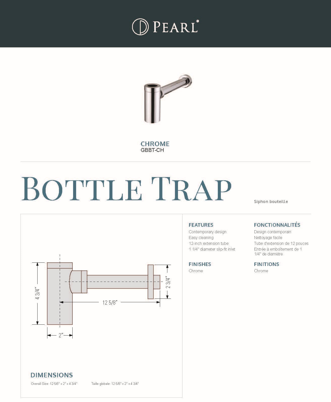 Designed to balance function with aesthetics, bottle traps by PEARL® are alluring and intuitive. Assembled from lead-free and rustproof internals, PEARL® offers a new design perspective with quality and functionality in mind.